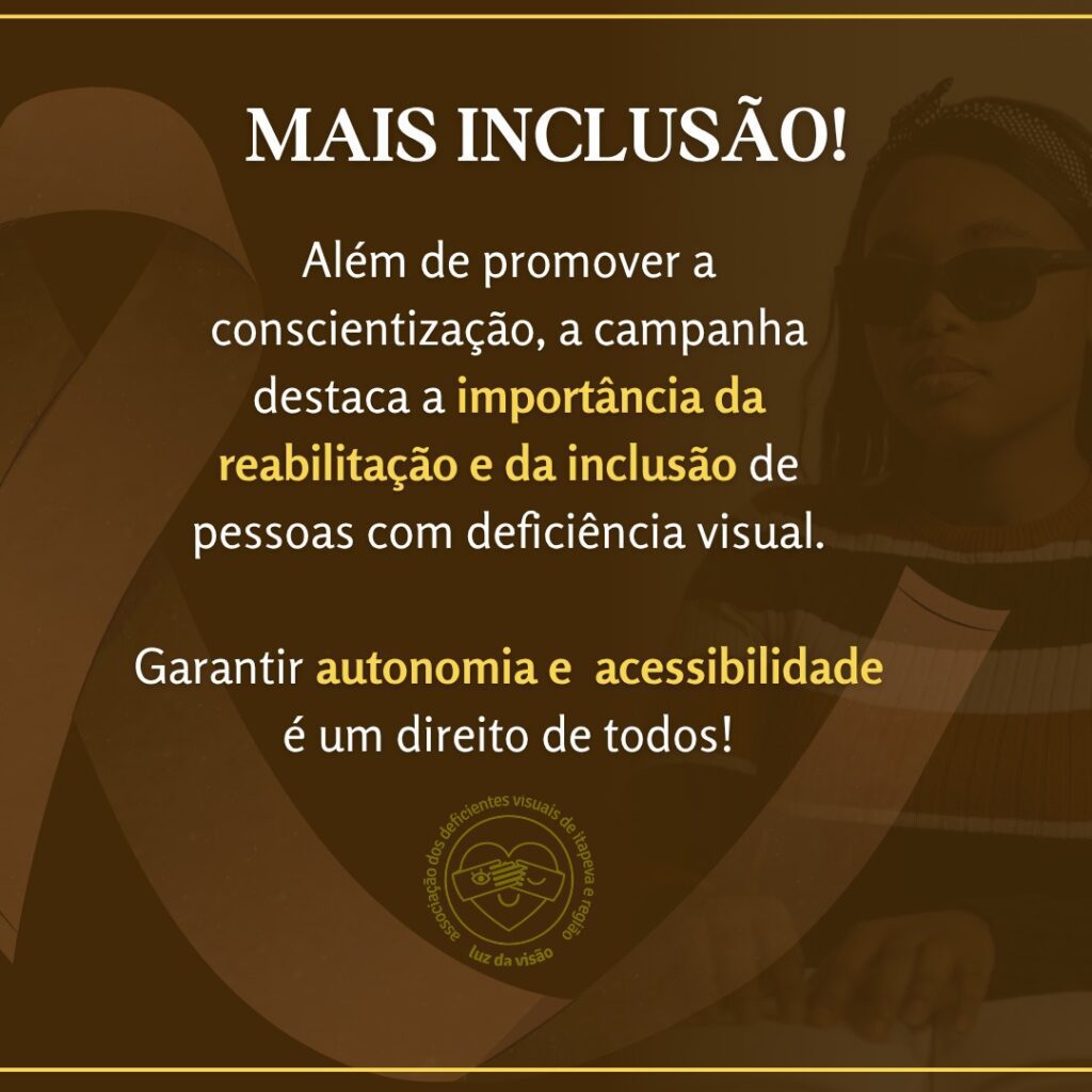 O objetivo central é alertar a sociedade sobre a importância da prevenção, do combate às doenças oculares e da reabilitação de pessoas com deficiência visual.
